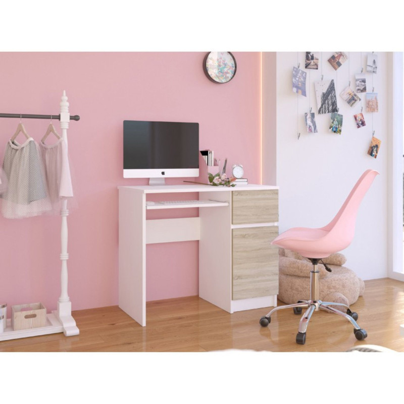 Počítačový stůl Piksel. Jednoduchý stůl v moderním barevném provedení. Stůl je vhodný do kanceláře i do dětského pokoje. Využití najde při práci s počítačem i při psaní domácích úkolů. Díky své velikosti se dobře vejde i do menších prostor. - jednoduchý a moderní design vytváří příjemný pracovní prostor - hladké boky - zásuvka a police na klávesnici se pohybují na kovových válečkových vodítkách - skříňka s policí - snadná montáž Údržba: Povrch nábytku utřete do čista měkkým hadříkem. Vyhněte se použití chemikálií. Foto je pouze ilustrační.